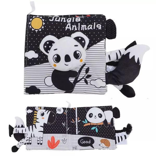Libro Sensorial de Tela Alto Contraste para Bebé – Jungle Animals | Estimulación Visual 0+ Meses